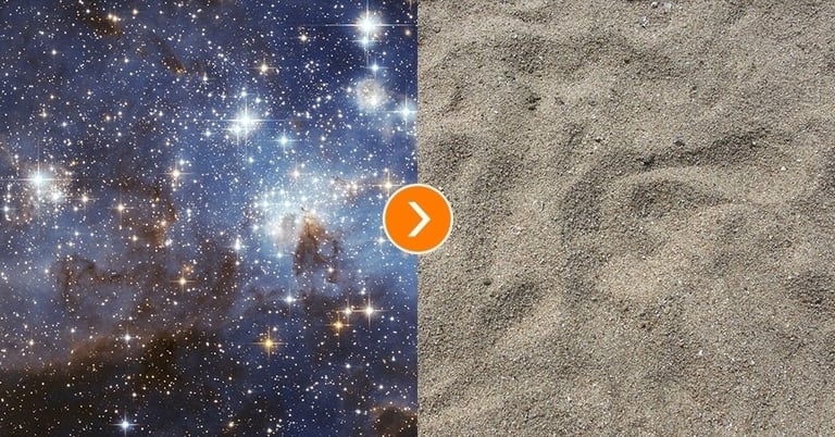 Os astrĂŽnomos estimam que existam mais de 200 bilhĂ”es de trilhĂ”es de estrelas no universo observĂĄvel â um nĂșmero tĂŁo grande que supera todos os grĂŁos de areia da Terra.
